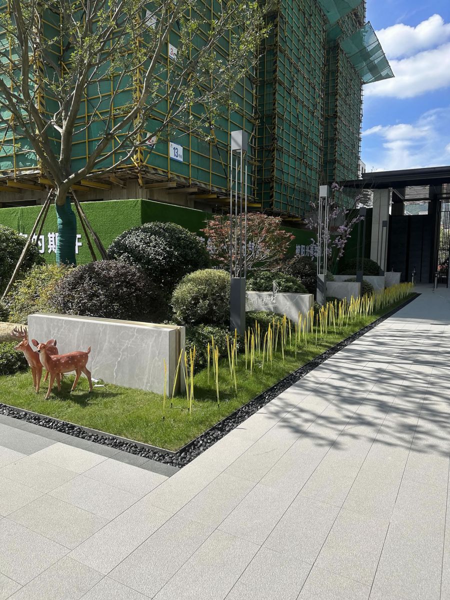 項(xiàng)目位于浙江麗水市,建筑面積18萬(wàn)平方米。 小區(qū)景墻使用600*1200希臘淺灰干掛施工, 園林地鋪使用300*900芝麻灰鋪貼。 整體效果色澤均勻,整潔大氣。