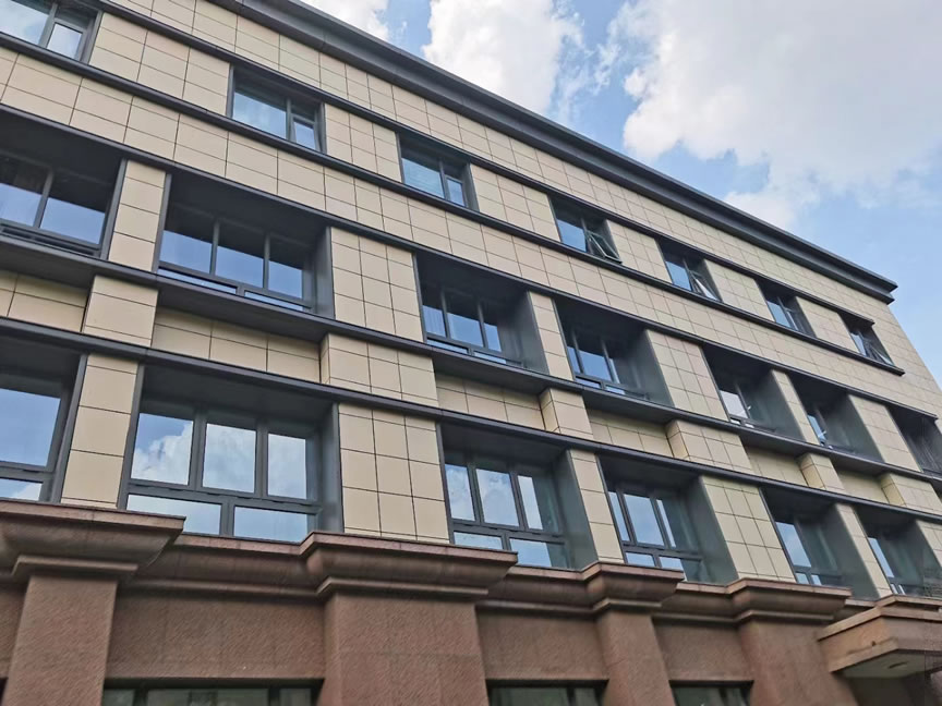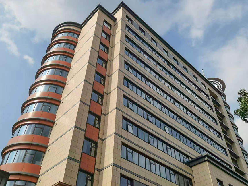 項目位于上海新村路,建筑面積近10萬平方米,為三級甲等綜合性醫(yī)院。 醫(yī)院外立面使用協(xié)進純色陶瓷薄板鋪貼。 產(chǎn)品色澤均勻細膩,效果整潔大氣。
