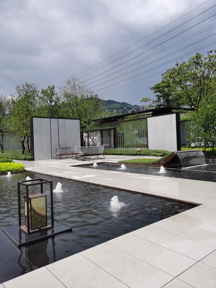 協(xié)進厚磚工程案例:安溪中駿·御璟府 項目采用中式園林風格設(shè)計,使用芝麻灰、芝麻黑產(chǎn)品搭配鋪貼。 效果古典又不缺現(xiàn)代感,大氣有不失唯美。