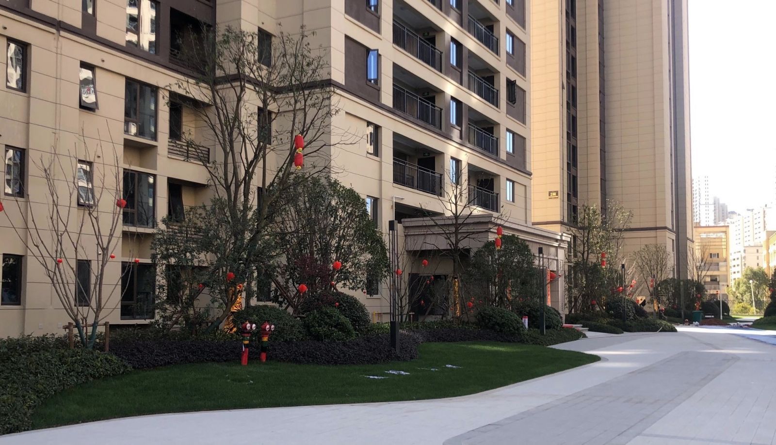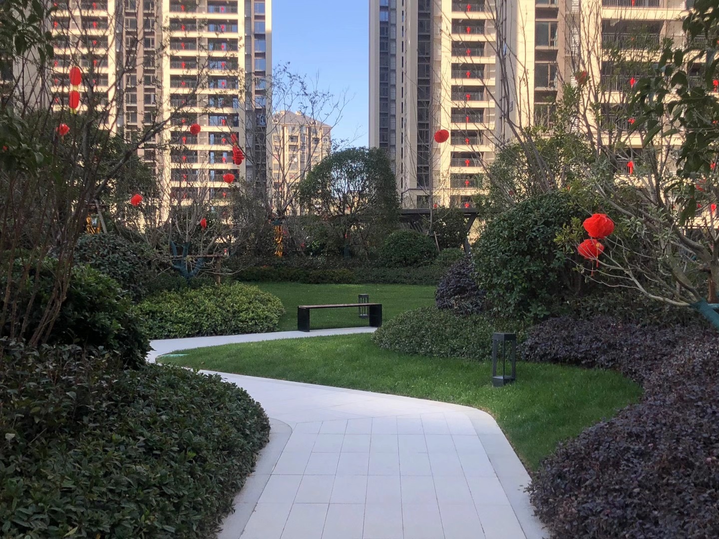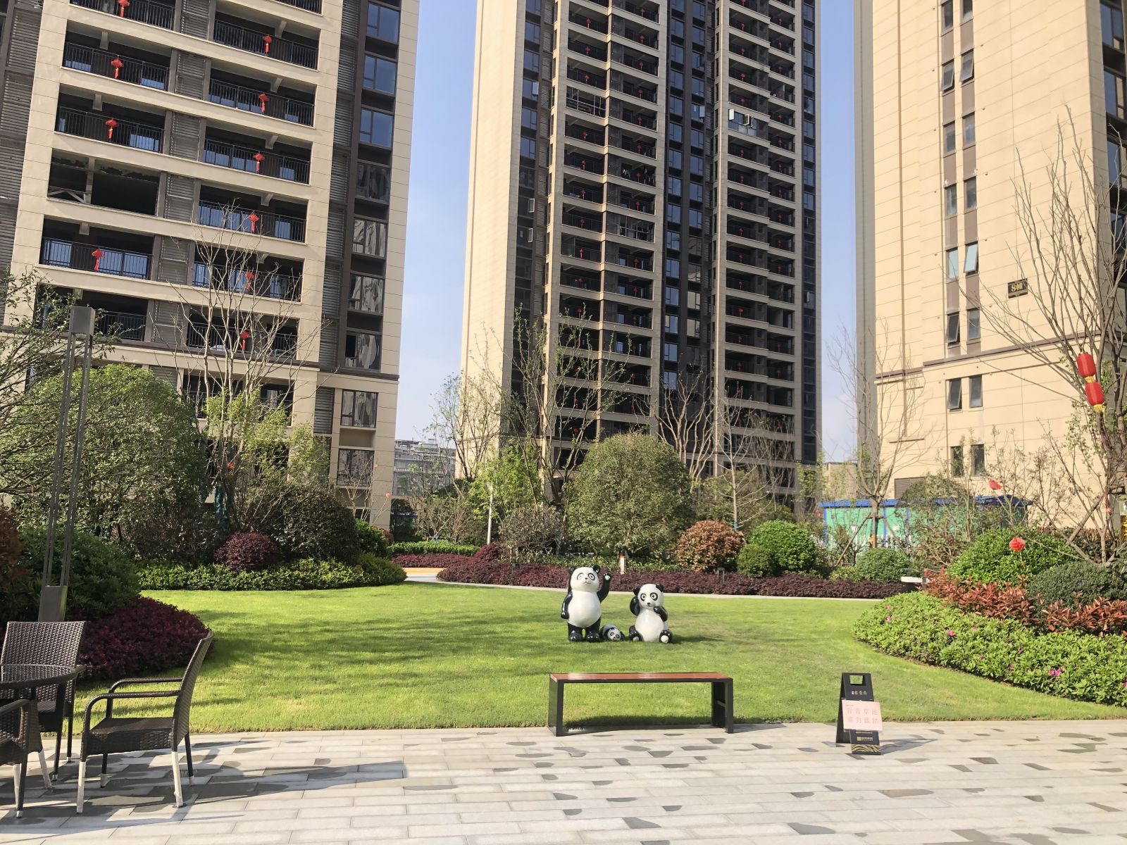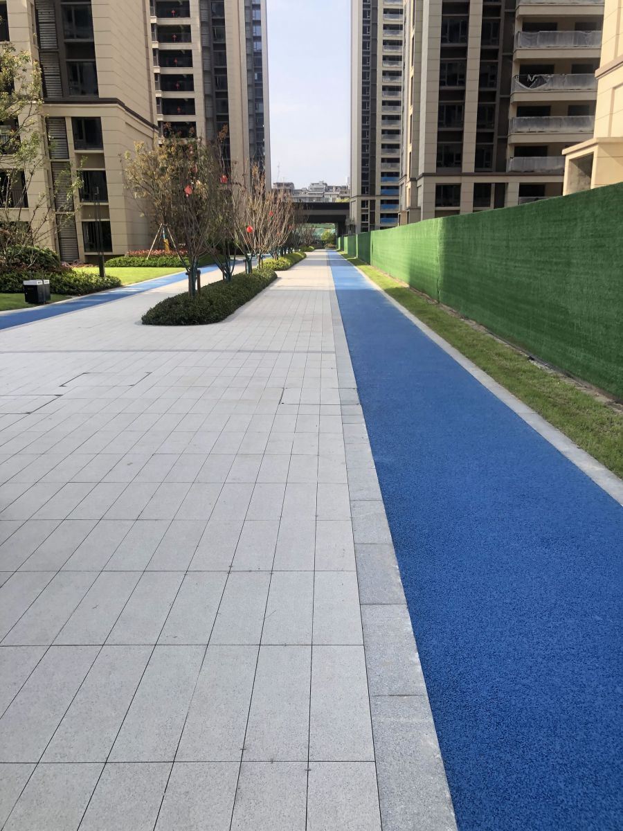 小區(qū)園林使用協(xié)進200*600陶瓷地鋪石搭配鋪貼,顏色統(tǒng)一,效果簡約整潔。
