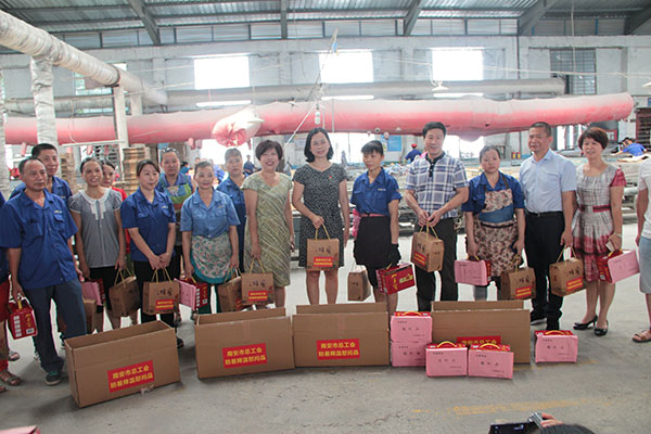 7月11日上午,南安市總工會(huì)、官橋鎮(zhèn)總工會(huì)領(lǐng)導(dǎo)蒞臨協(xié)進(jìn)公司,對(duì)一線員工表達(dá)了親切的關(guān)心和慰問,并特意送來一批防暑降溫食品和飲料慰問全體員工,我們向各位領(lǐng)導(dǎo)表示感謝!并感謝黨和政府對(duì)我們的關(guān)心和對(duì)企業(yè)的支持!